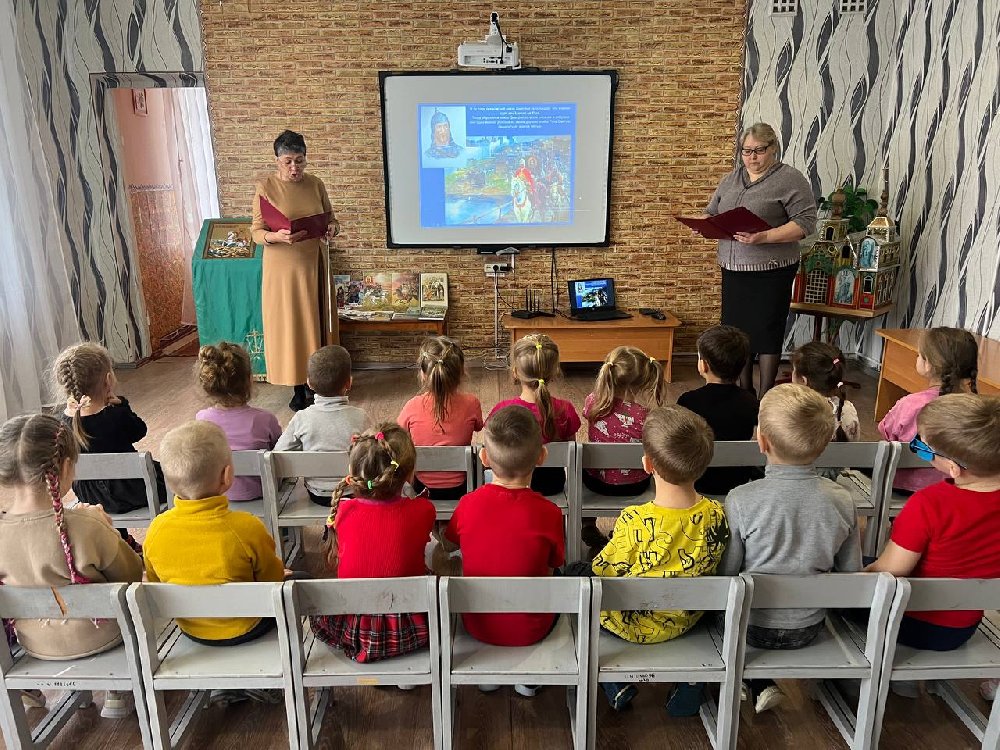5 ноября 2025 г в детском саду № 3 «Ягодка» г. Краснодона в рамках реализации мероприятий по духовно-нравственному воспитанию на основе традиционных ценностей и с целью исторического просвещения были проведены Минутки Духовности «День народного единства и День Казанской иконы Божьей Матери». Воспитанники старшего дошкольного возраста познакомились с историей возникновения праздника, узнали о том, что только объединив все народы, проживающие на территории Руси, стала возможной победа над польскими захватчиками в 1612 г. Большой интерес у ребят вызвал рассказ о подвиге Кузьмы Минина и князя Дмитрия Пожарского, дети рассмотрели оружие, с которым ополчение выступило в поход, поиграли в подвижную музыкальную игру «Народное ополчение», узнали о том, что все время похода воинов сопровождала икона Казанской Божьей матери, которую нашла на пожарище маленькая девочка Матрона, о подвиге патриарха Гермогена, которого враги заточили в темницу, однако он разослал по всем городам и весям призыв «Не покоряться захватчикам и освободить землю Русскую». Этот призыв послужил основой создания ополчения и освобождения Руси от польских интервентов. В память о тех событиях в Москве, на Красной площади построен Казанский собор и поставлен памятник Кузьме Минину и князю Дмитрию Пожарскому. Особый интерес у малышей вызвал просмотр фрагмента мультфильма, видеоклипы и песни по теме праздника. Каждый участник мероприятия получил познавательную книжку-раскраску, по которой можно дома рассказать родным и близким о героях народного ополчения и исторических событиях далеких лет.
