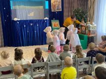 4 декабря 2025 г в детском саду № 3 «Ягодка» г. Краснодона в рамках реализации программы духовно-нравственного воспитания на основе православной культуры «Лето Господне» прошли занятия-утренники, посвященные празднику Введения во Храм Богородицы. Педагоги рассказали малышам об истории праздника, о том, что много лет назад родители Богородицы Иоаким и Анна привели свою трехлетнюю дочь в Храм. Ребята стали участниками мини-драматизации «Богородица идет по ступенькам»: девочки в светлых плащах-накидках, держа в руках свечи, провожали маленькую Марию в Храм. В традиции нашего народа этот праздник считали детским, родители приводили детей в церковь, поздравляли их. В этот день для воспитанников детского сада педагоги показали кукольный спектакль «Три ступеньки», в котором активное участие принимали ребята – отвечали на вопросы ведущих и героев сказки, рассуждали о том, кого они любят, что такое доброта, честность. В честь праздника ребята получили сладкие подарки и детские книги с иллюстрациями по теме праздника, которые вместе с воспитателями смогут рассмотреть в группе. Надеемся, что ознакомление с историей православного праздника послужит одним из факторов формирования любви к своей Отчизне, станет основой уважения к традиционным ценностям нашего народа.