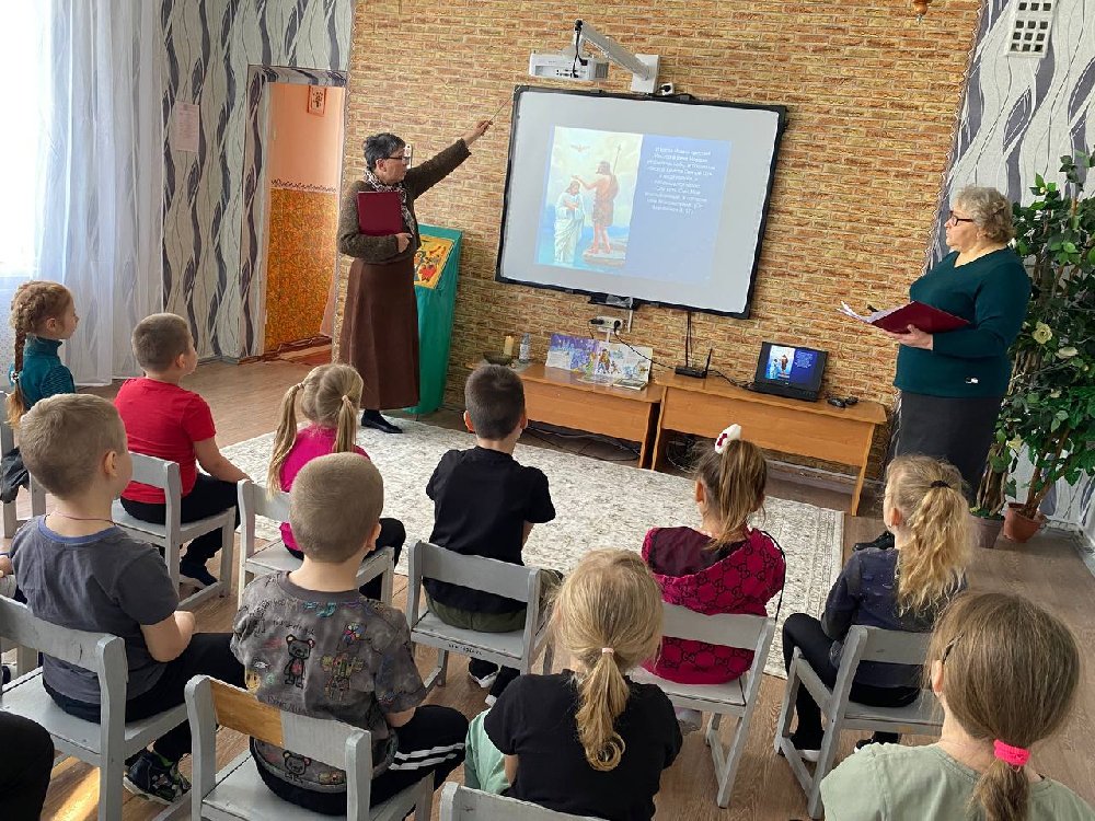 В рамках реализации Программы духовно-нравственного воспитания на основе православных праздников «Лето Господне» и с целью приобщения детей к традиционным ценностям нашего народа, воспитания интереса к историческому и духовному наследию нашего народа в ГБДОУ ЛНР «Краснодонский д/с комбинированного вида № 3 «Ягодка» прошли Минутки Духовности на тему «Праздник Крещения Господня» для детей старшего дошкольного возраста. Педагоги познакомили ребят с историей праздника на реке Иордан, о чудесном появлении голубя во время крещения Иисуса Христа, а также большое внимание уделили традициям празднования на Руси. С давних времен на водоемах обустраивали прорубь, которую в память об истории праздника называли Иордань, люди шли торжественно, крестным ходом, священник освящал воду, с молитвами погружая крест в воду, окроплял присутствующих святой водой. Каждый стремился набрать крещенской воды, чтобы целый год хранить ее в «Красном углу» избы, где висели иконы. Водой окропляли жилище и пили для поддержания сил и исцеления от болезней. Один из участников праздника, рассказал о том, что сегодня с утра он попозже пришел в детский сад, потому что они с мамой были утром в церкви. «Батюшка освятил воду и побрызгал нас с мамой. Мы набрали водичку» - рассказал нам ребенок. Воспитанники посмотрели мультимедийную презентацию и мультфильм по теме праздника. Обратили внимание на маленького белого голубя на иконе, прослушали стихи для детей, рассматривали красочные иллюстрации в книгах. Надеемся, что обращение к событиям православных праздников станет основой уважительного отношения к истории и традиционным ценностям нашей страны.